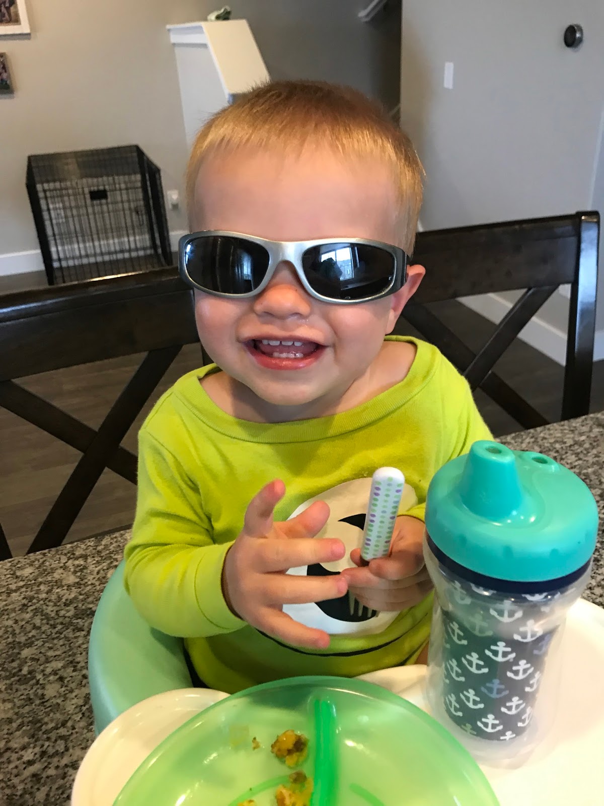 "amen!" after we say prayers. It sounds like he tries to say Mia "Me!" He calls Dylan "D" just like Mia. He loves both of his grandpas and calls them "pa" or "ba ba". He also yells "side" all the time and bangs on the door to try to get outside. He does not take it well if we can't play outside…:) He says "show" and sits down on the couch or snuggles up under the covers in our bed when he wants to watch a show. "Cookie" is a very important work in his vocabulary :). He says "hi, bye, more(for his sippy, binky, or anything he wants really), some, dog, shut, off, daddy, and mommy very clearly. He's just a dream come true! We're totally obsessed with our little dude.