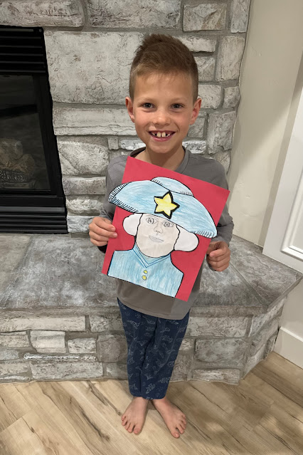 When we went to Rhett's patriotic program there was art all over the walls that the kids had done. Chris and I were chuckling at all of the cute attempts and trying to guess which one was Rhett's. Then he brought this one home and we were both shocked and really impressed at what a good job Rhett did!